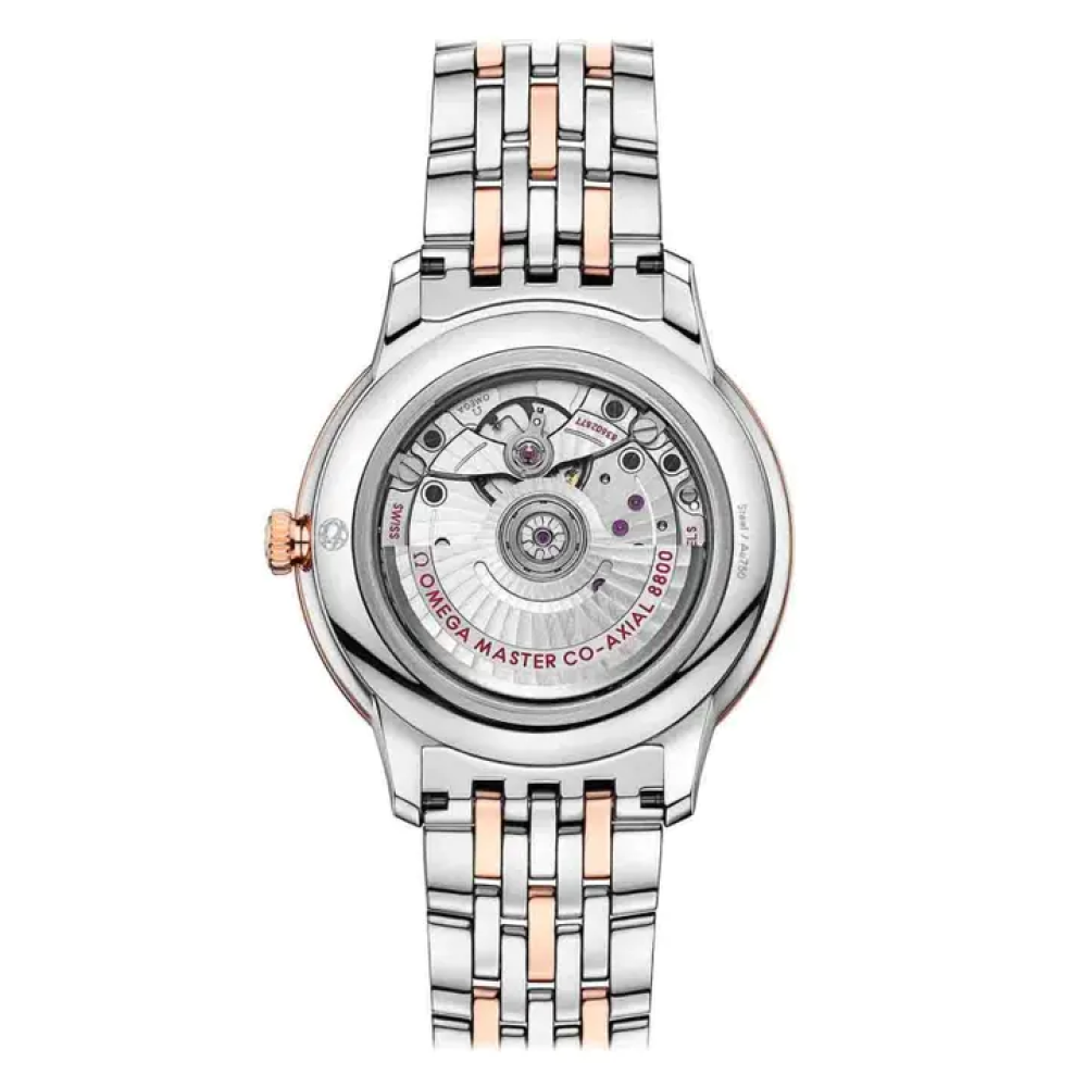 تُعدّ مجموعة أوميغا ديفيل برستيج، التي تأسست عام ١٩٩٤، مجموعة خالدة، وهي الآن في جيلها الثالث. تواصل هذه الساعات تمثيل التصميم الكلاسيكي والأناقة الراقية، وتقدم تشكيلة واسعة من الأنماط والتشطيبات والألوان لتناسب مختلف أنماط الحياة والشخصيات. في هذا الموديل المصنوع من الفولاذ المقاوم للصدأ والذهب عيار ١٨ قيراطًا، بقطر ٤٠ مم، يتميز المينا الفضي المقبب بلمسة نهائية كريستالية. يتميز المينا بعقارب مطلية بتقنية الترسيب الفيزيائي للبخار (PVD) بلون الذهب عيار ١٨ قيراطًا، بالإضافة إلى أرقام رومانية ومؤشرات كابوشون متناوبة. تأتي هذه الساعة، الحاصلة على شهادة ماستر كرونومتر، بسوار من الفولاذ المقاوم للصدأ والذهب عيار ١٨ قيراطًا، وتعمل بحركة أوميغا ماستر كو-أكسيال كاليبر ٨٨٠٠، والتي يمكن رؤيتها من خلال الغطاء الخلفي المصنوع من الكريستال الياقوتي المقاوم للخدش.