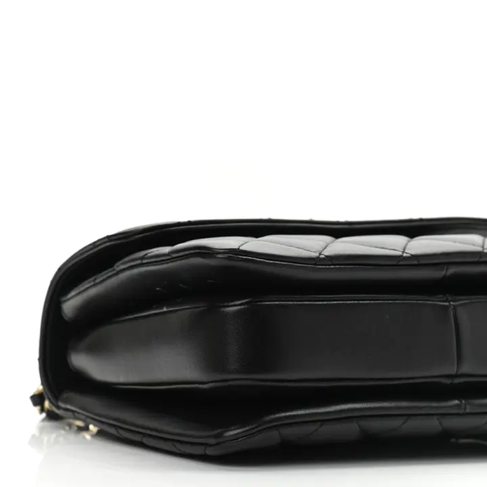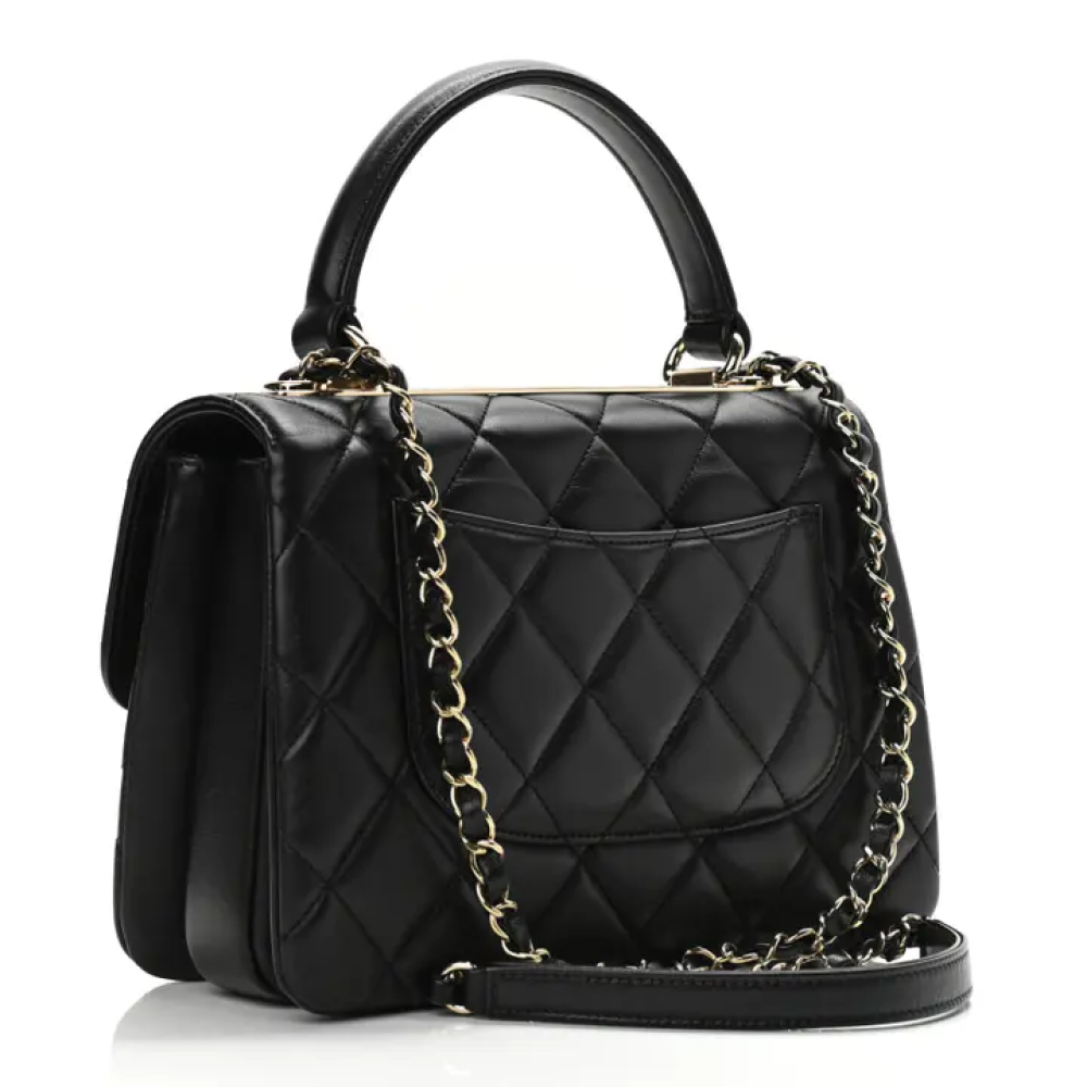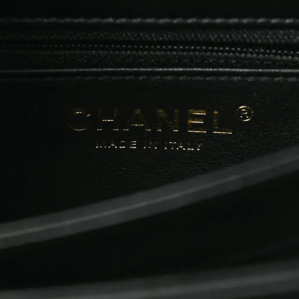 هذه حقيبة شانيل أصلية صغيرة الحجم بتصميم عصري، مصنوعة من جلد الخروف الأسود المبطن، وتتميز بشعار CC المزدوج. صُنعت هذه الحقيبة الأنيقة من جلد الخروف الأسود المبطن على شكل ماسي. تتميز بمقبض علوي مقوى من الجلد مع حلقات ذهبية، وحزام كتف من الجلد المنسوج بسلسلة ذهبية مع وسادة كتف، ولوحة شانيل ذهبية. يُفتح الغطاء بقفل دوار يحمل شعار CC ليكشف عن بطانة داخلية من الجلد الأسود مزودة بجيوب.
