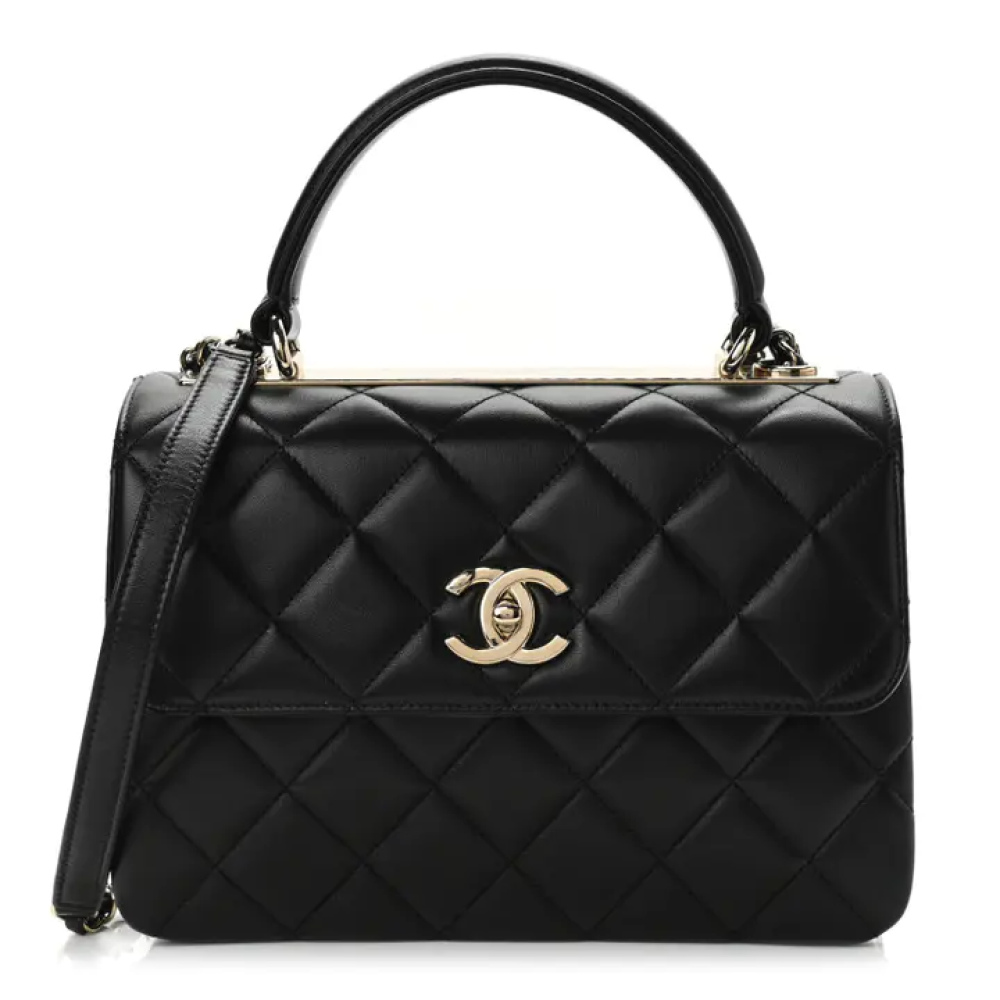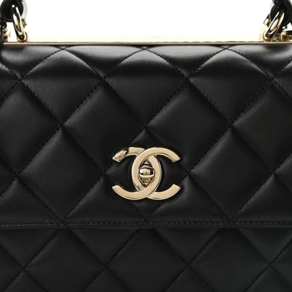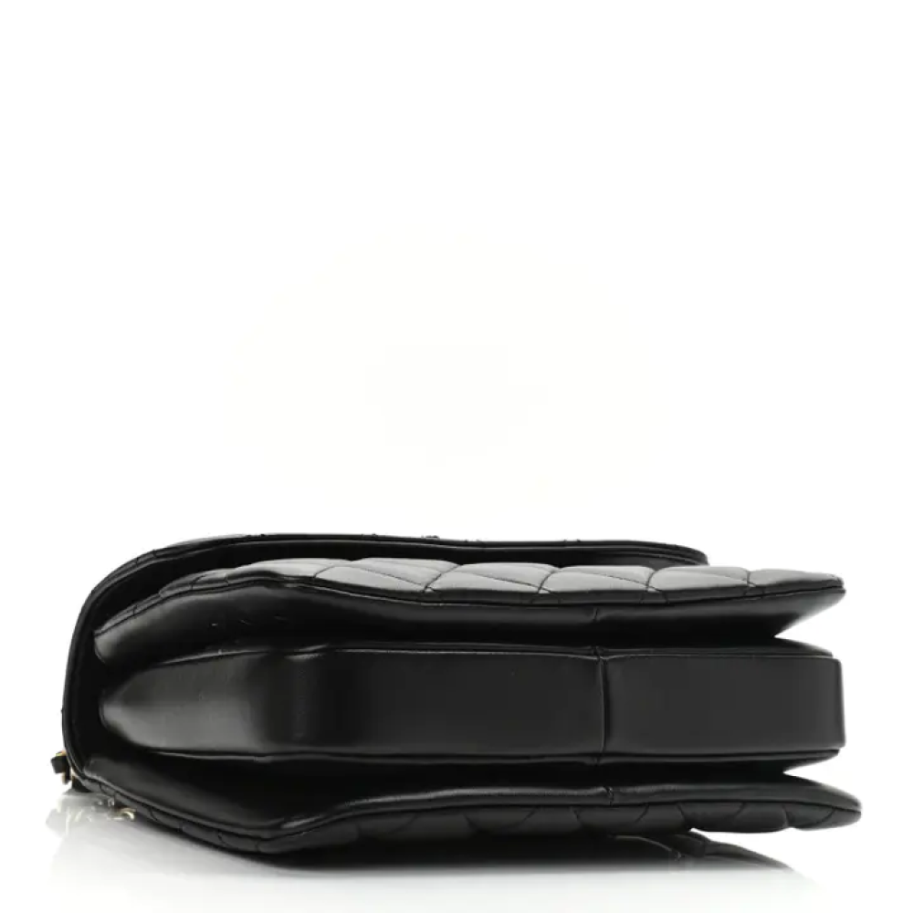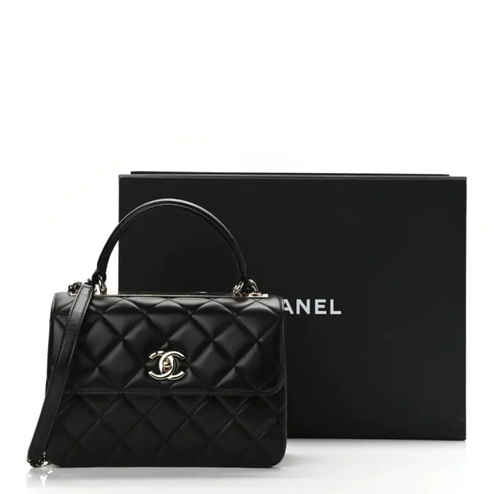 هذه حقيبة شانيل أصلية صغيرة الحجم بتصميم عصري، مصنوعة من جلد الخروف الأسود المبطن، وتتميز بشعار CC المزدوج. صُنعت هذه الحقيبة الأنيقة من جلد الخروف الأسود المبطن على شكل ماسي. تتميز بمقبض علوي مقوى من الجلد مع حلقات ذهبية، وحزام كتف من الجلد المنسوج بسلسلة ذهبية مع وسادة كتف، ولوحة شانيل ذهبية. يُفتح الغطاء بقفل دوار يحمل شعار CC ليكشف عن بطانة داخلية من الجلد الأسود مزودة بجيوب.