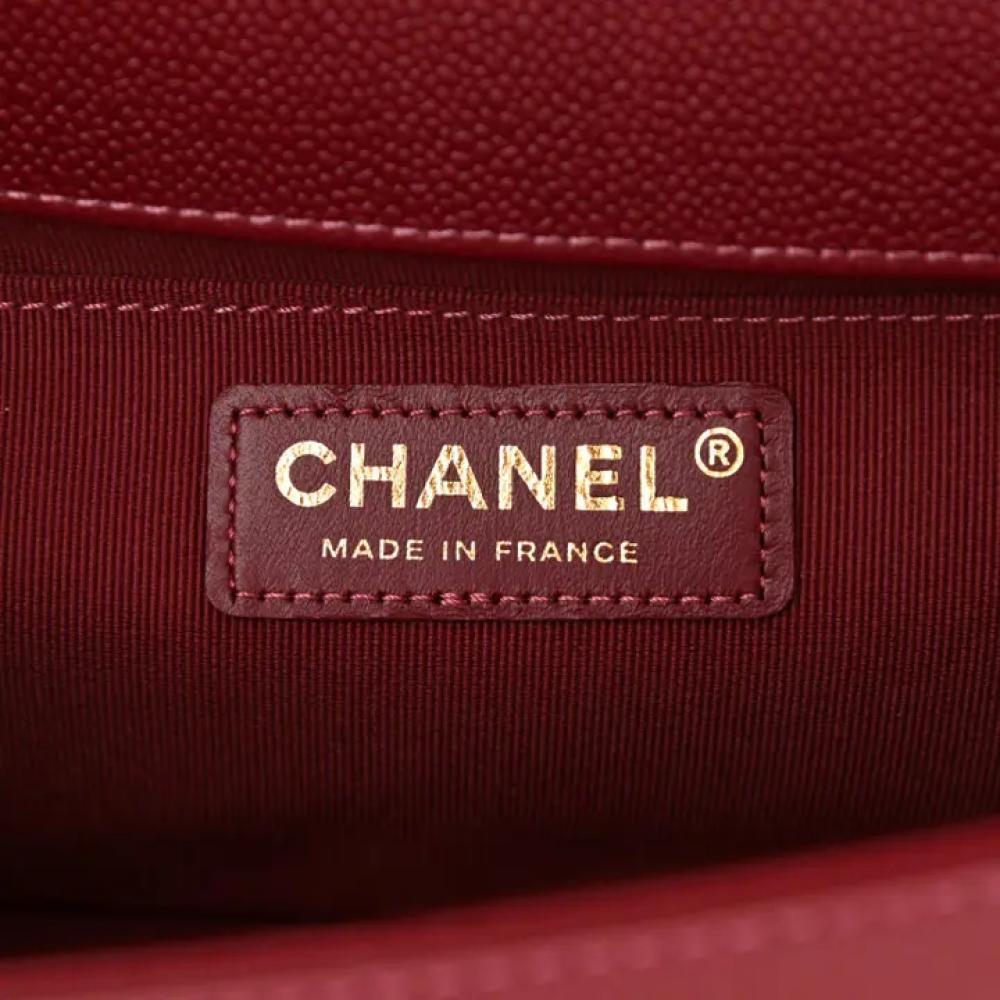 حقيبة شانيل متوسطة الحجم مبطنة من جلد الكافيار، لون عنابي