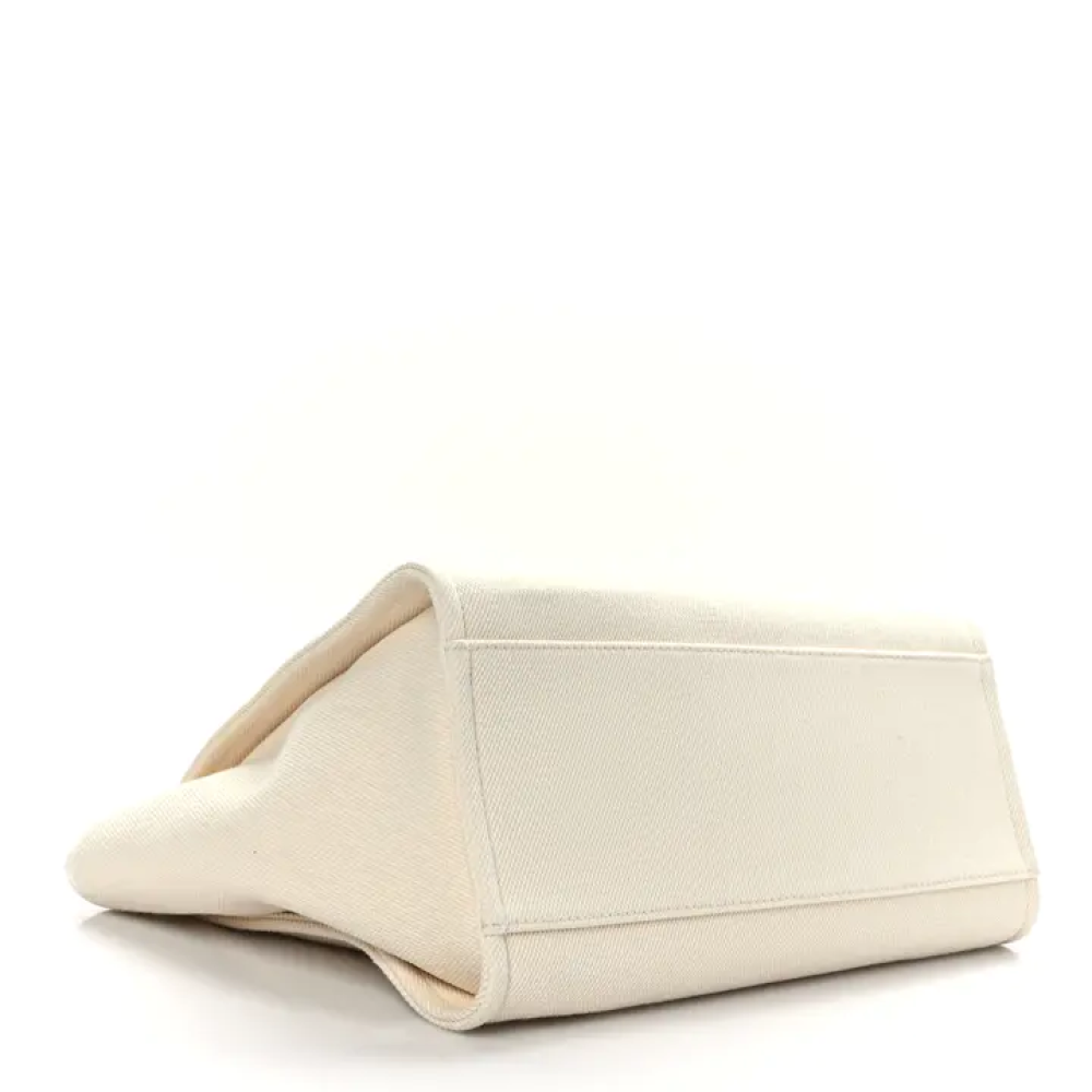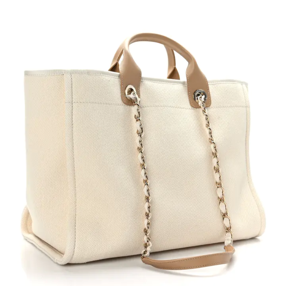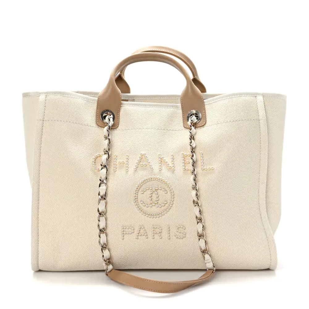 حقيبة شانيل متوسطة الحجم من قماش الكانفاس اللؤلؤي