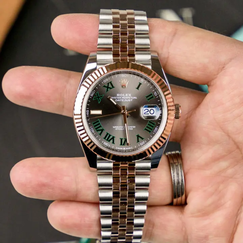 ساعة رولكس ديت جست 41 مم ثنائية اللون من الذهب الوردي ويمبلدون مع سوار جوبيلي هي قطعة كلاسيكية تتميز بالكثير من الشخصية والرقي! إنها مريحة للغاية على ...
