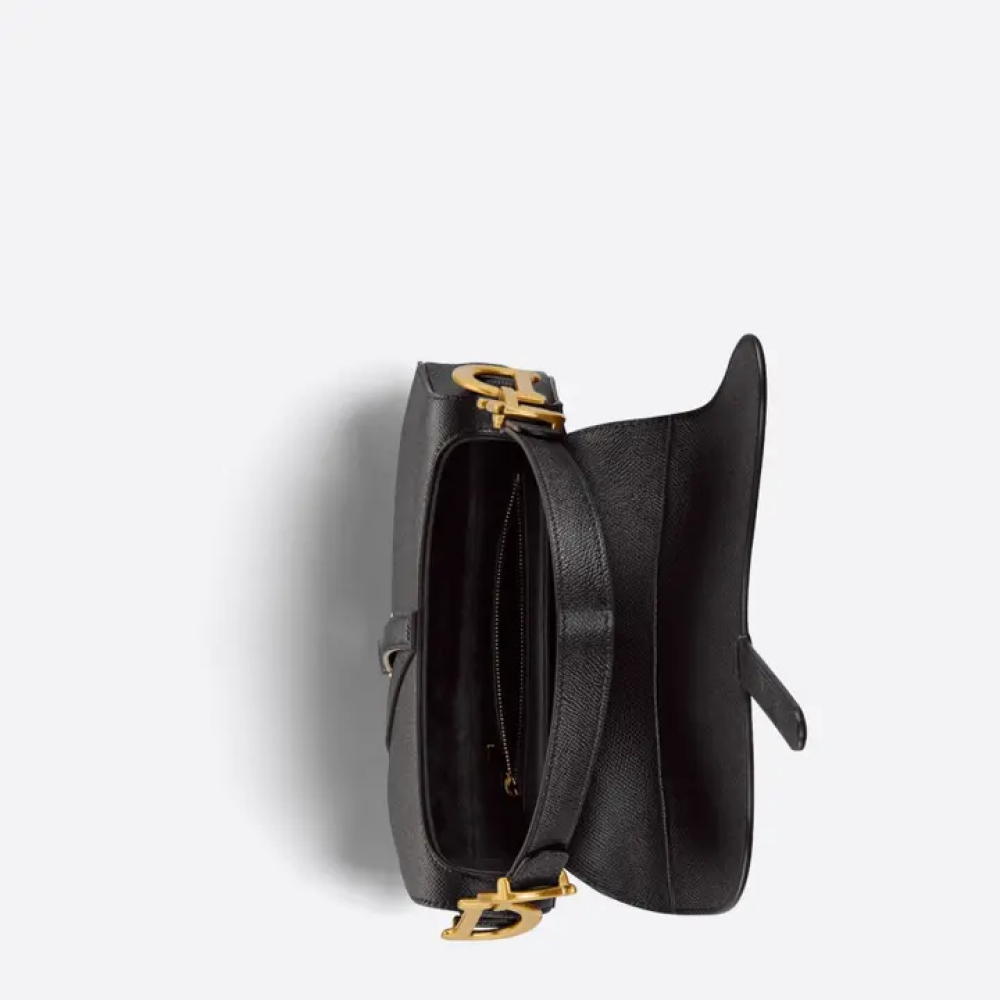 تُبرز هذه الحقيبة الجانبية تصميم ماريا غراتسيا كيوري المبتكر. مصنوعة من جلد البقر الأسود المحبب، وتتميز بتعليقة على شكل حرف D مع حزام مغناطيسي، وغطاء جانبي بتصميم كلاسيكي، وشعار CD معدني بلمسة نهائية ذهبية عتيقة على جانبي المقبض. بفضل حزامها الرفيع القابل للتعديل والإزالة، يمكن حملها باليد أو على الكتف أو بشكل متقاطع.