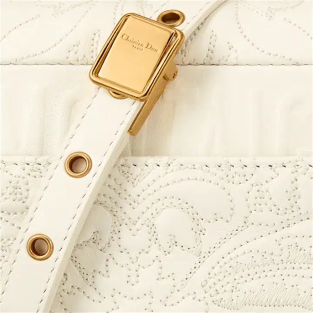 تجمع حقيبة ديور كارو بين الحداثة والأناقة الخالدة. صُممت الحقيبة من جلد الخروف المبطن بلون اللاتيه، وتُبرز زخارفها المستوحاة من فن الباروك الأندلسي بأسلوب فني مميز. تتميز الحقيبة بغطاء مزين بمشبك معدني عتيق مطلي بالذهب يحمل شعار "CD"، مستوحى من ختم زجاجة عطر كريستيان ديور. يتيح حزام الكتف القابل للفصل، والمزين بحلقات تحمل شعار "CD"، حمل الحقيبة باليد أو على الكتف أو بشكل متقاطع، أو استبداله بأحد أحزمة الدار العريضة المطرزة، مما يجعل هذه الحقيبة الصغيرة مناسبة لإطلالات النهار والمساء على حد سواء.