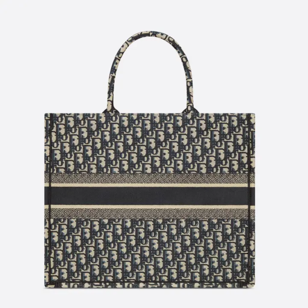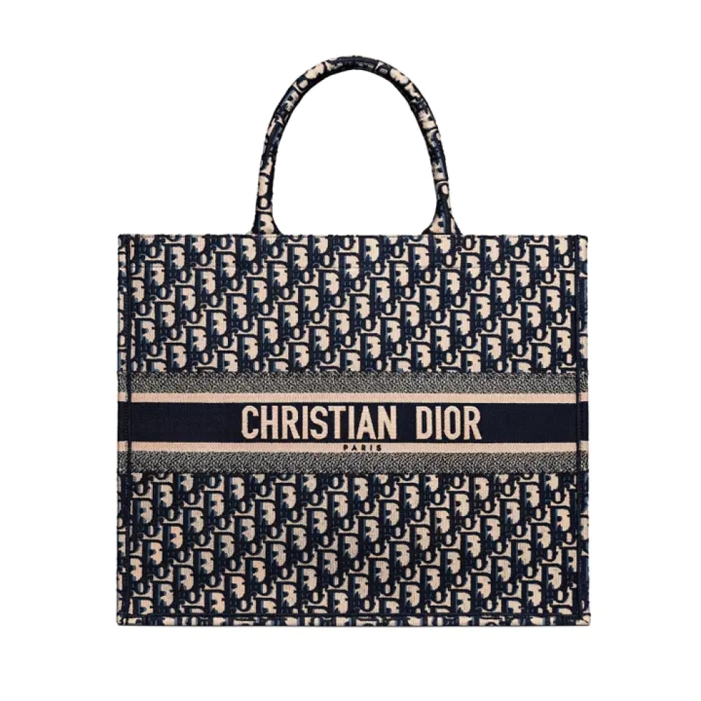 حقيبة "بوك توت" من قِبل المديرة الإبداعية لقسم الأزياء النسائية في ديور، ماريا غراتسيا كيوري، وهي قطعة أساسية في أناقة ديور. تزدان الحقيبة بتطريز كلاسيكي بنقشة "أوبليك" باللونين الأبيض والأزرق، وتتسع لمجموعة متنوعة من الأغراض اليومية الضرورية. تتميز الحقيبة بحجمها الكبير وتوقيع كريستيان ديور باريس في مقدمتها، في إشارة إلى براعة ديور في التصميم، ويمكن حملها باليد أو على الكتف.