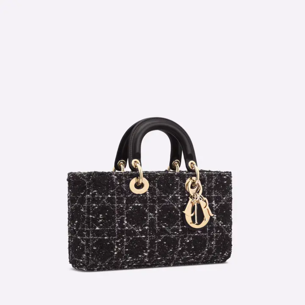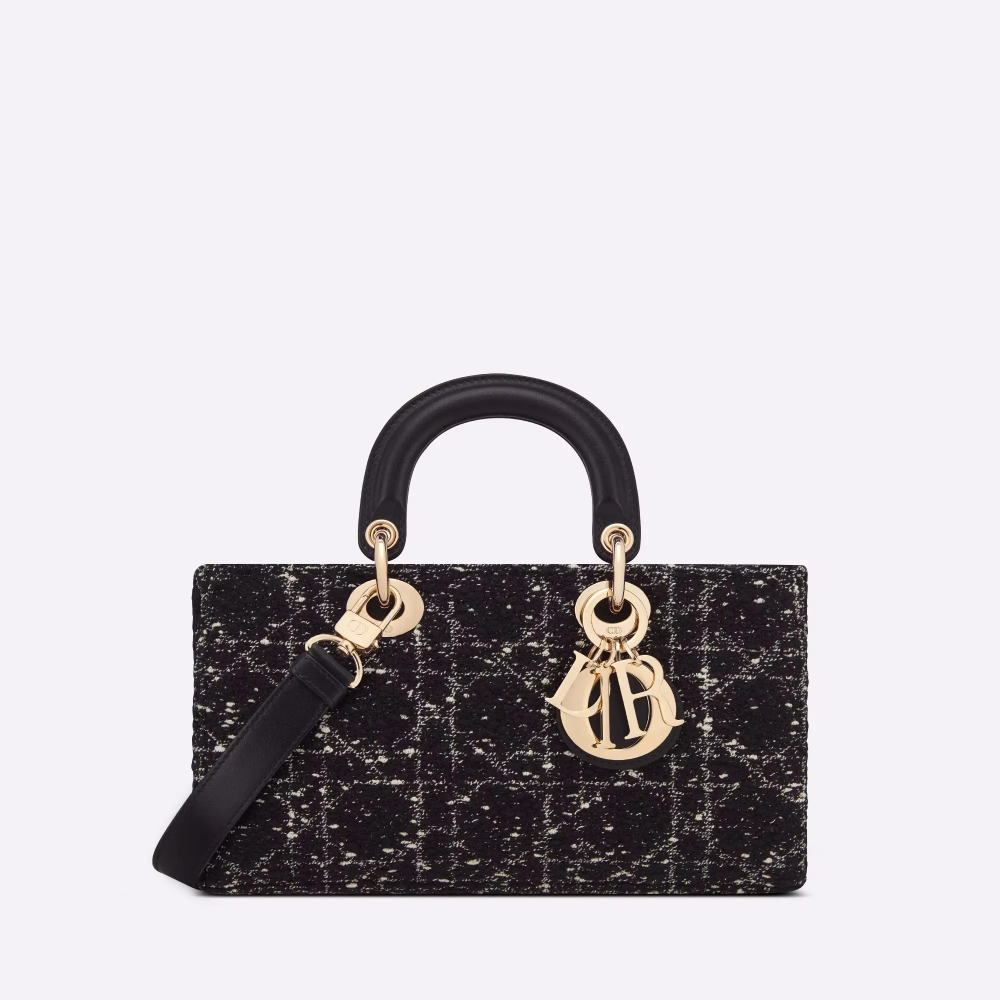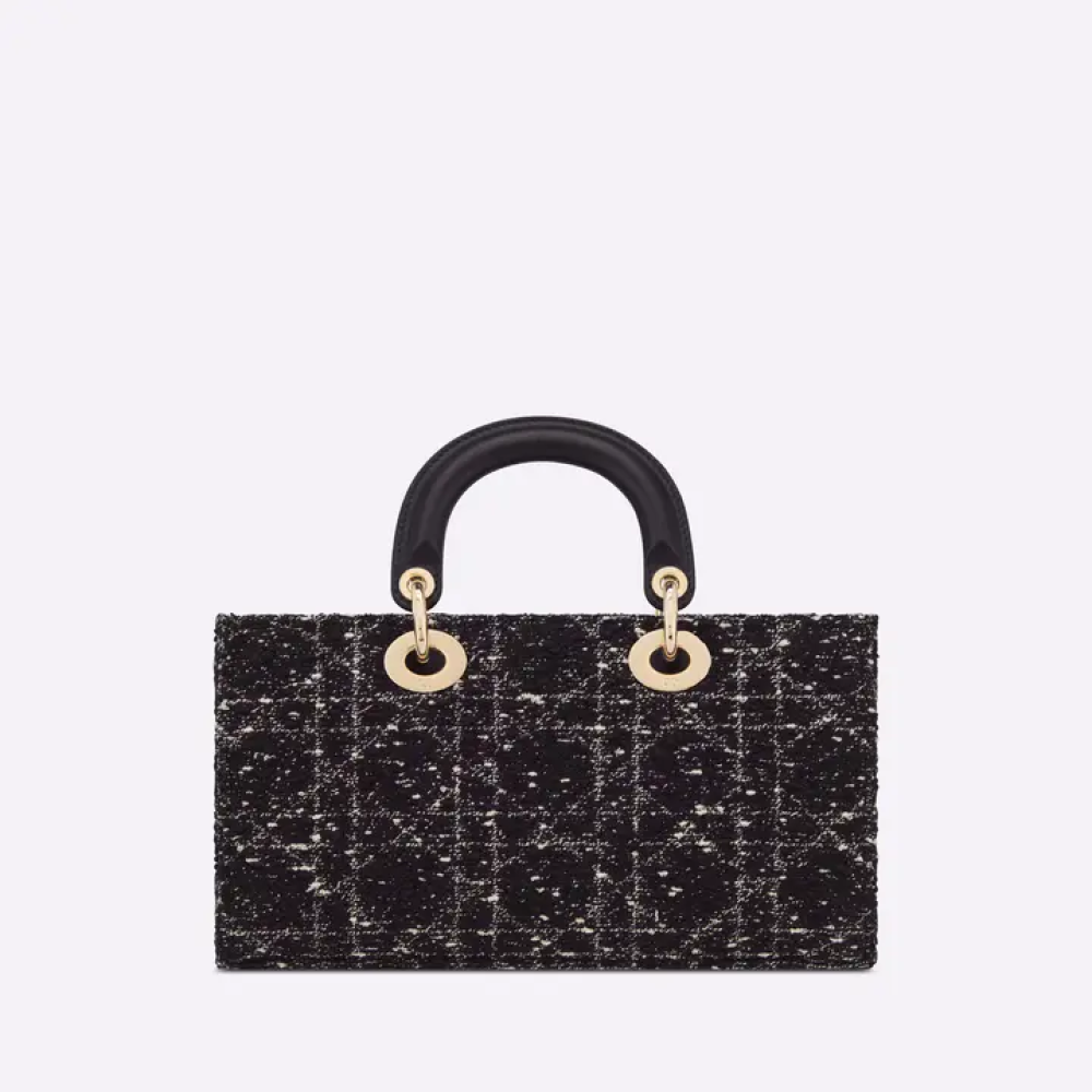 تُبرز حقيبة ليدي دي جوي جمالية مجموعة ليدي ديور البسيطة، مُجسدةً رؤية ديور العميقة للأناقة والجمال. تتميز هذه الحقيبة العصرية والأنيقة بصناعتها الدقيقة من قماش أسود بنقشة التويد، ومُزينة بنقشة كاناج مُطرزة بخيوط ذات تأثيرات مُختلفة تُضفي عليها مزيدًا من الأناقة. يُضفي