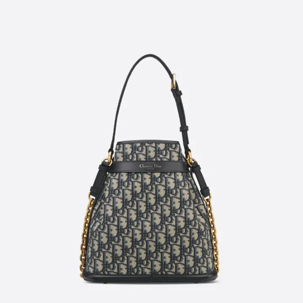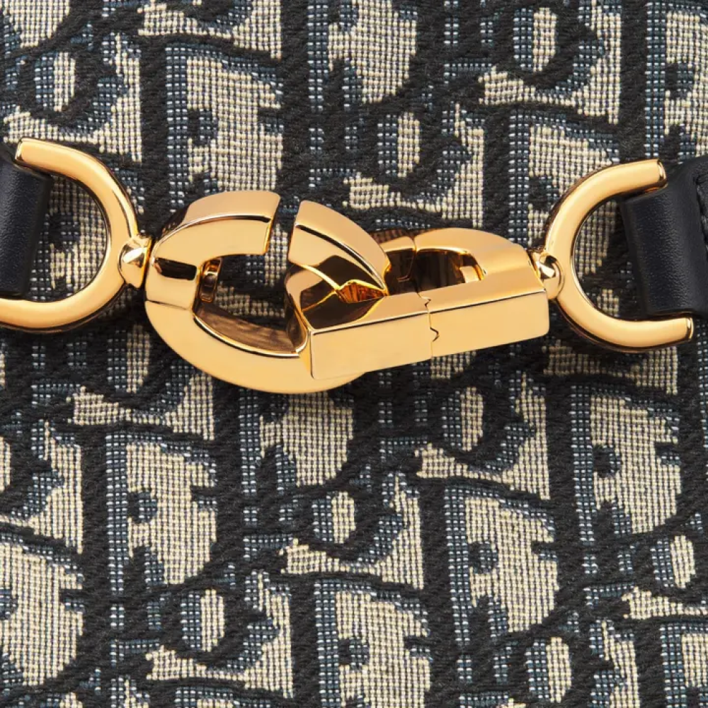 حقيبة C'est Dior الجديدة لخريف 2023، تصميم أنيق وخالد. يتميز تصميمها بنقشة الجاكار الزرقاء Dior Oblique مع تفاصيل من جلد العجل الأزرق. بفضل قفل CD Lock المزود بحرف D ملتوي، تحافظ هذه الحقيبة على أغراضك الأساسية بأمان. كما تتيح لك المقبض العلوي وحزام السلسلة القابل للتعديل والإزالة مع قطعة جلدية حمل الحقيبة المتوسطة الحجم بسهولة باليد أو على الكتف.