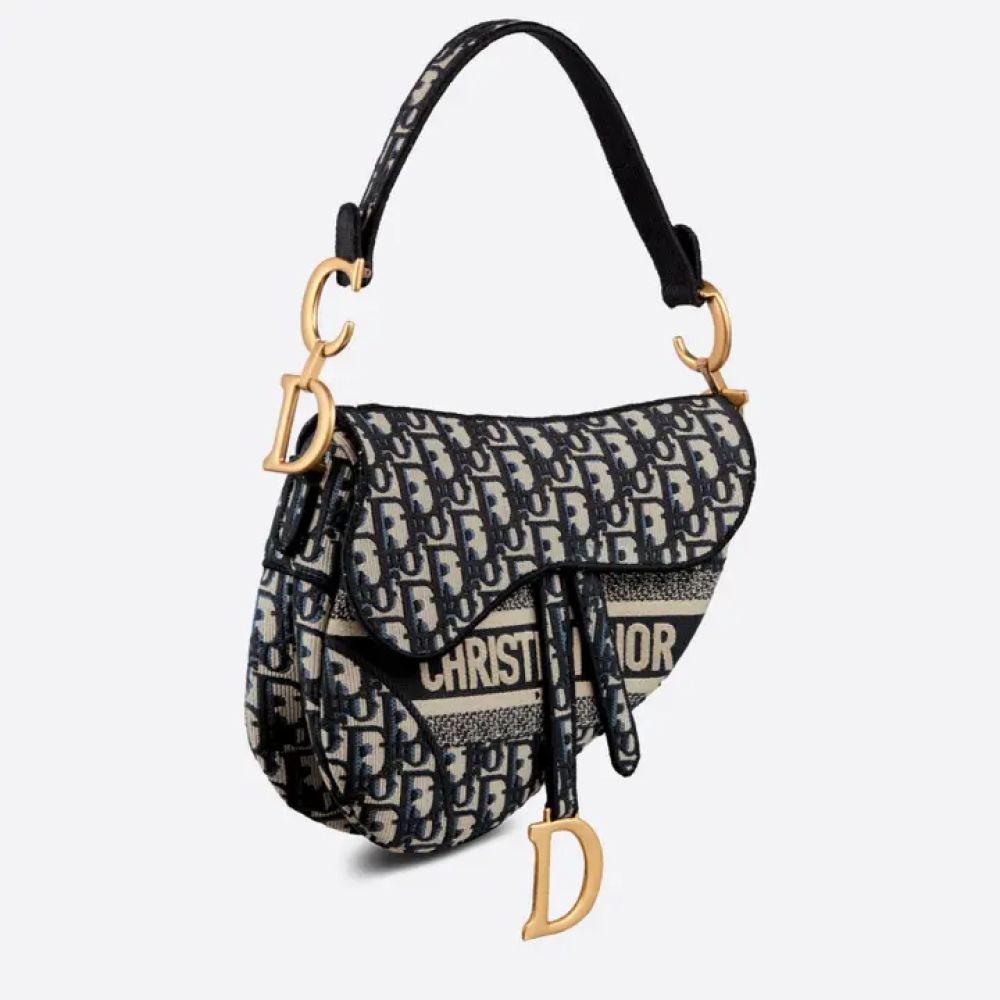تُضفي ماريا غراتسيا كيوري لمسة عصرية على حقيبة سادل الأيقونية بتصميمٍ لافتٍ للأنظار. يتميز هذا التصميم الكلاسيكي بمشبك مغناطيسي على شكل حرف "D" وغطاء على شكل سرج، مع هيكل "CD" كلاسيكي على جانبي المقابض، مما يمنحها لمسة عصرية فورية. صُنعت الحقيبة من قماش ديور أوبليك الأزرق الأصلي المطرز، مع إكسسوارات ذهبية عتيقة، ويمكن تنسيقها مع أحد أحزمة البوهو الجديدة لهذا الموسم لإطلالة متعددة الاستخدامات.