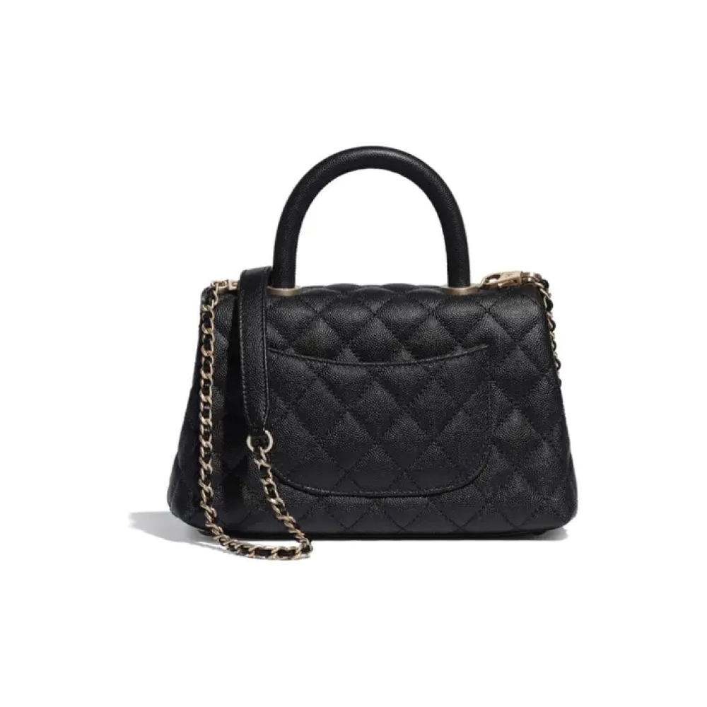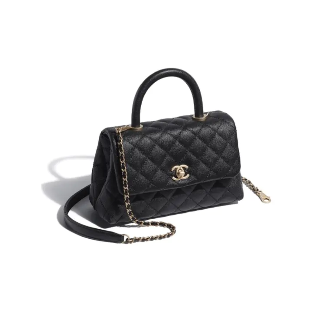 مقاس28*17*9 سم وصف هذه حقيبة شانيل ميني كوكو ذات المقبض القلاب، مصنوعة من جلد الكافيار الأسود المبطن على شكل ماسي. تتميز هذه الحقيبة الأنيقة...