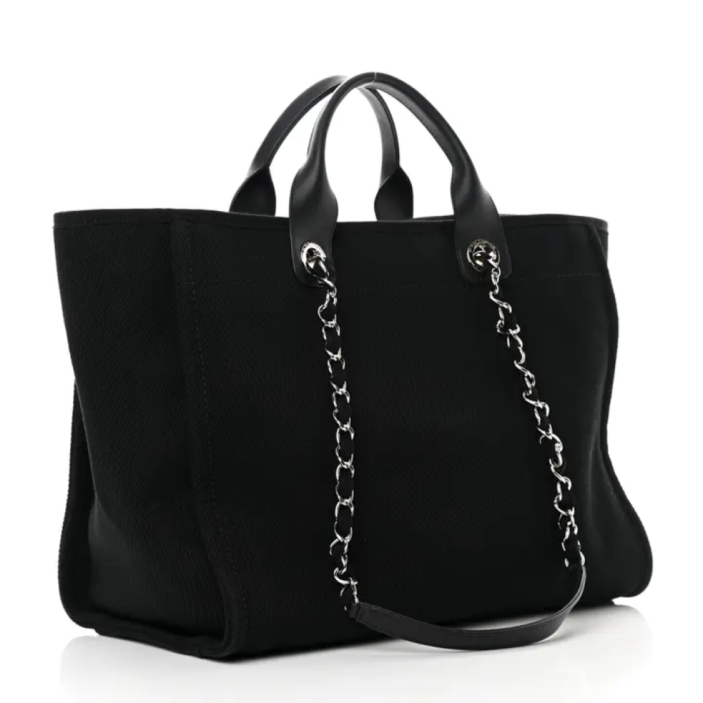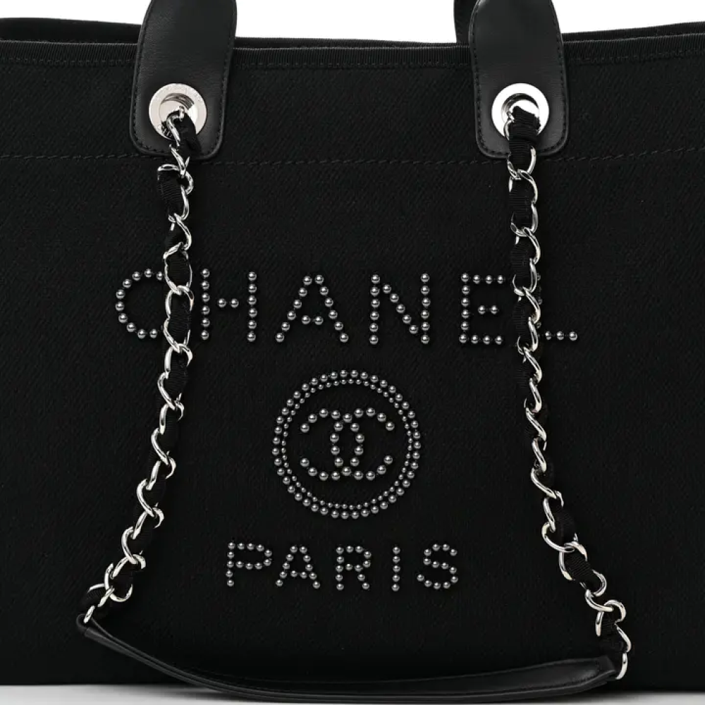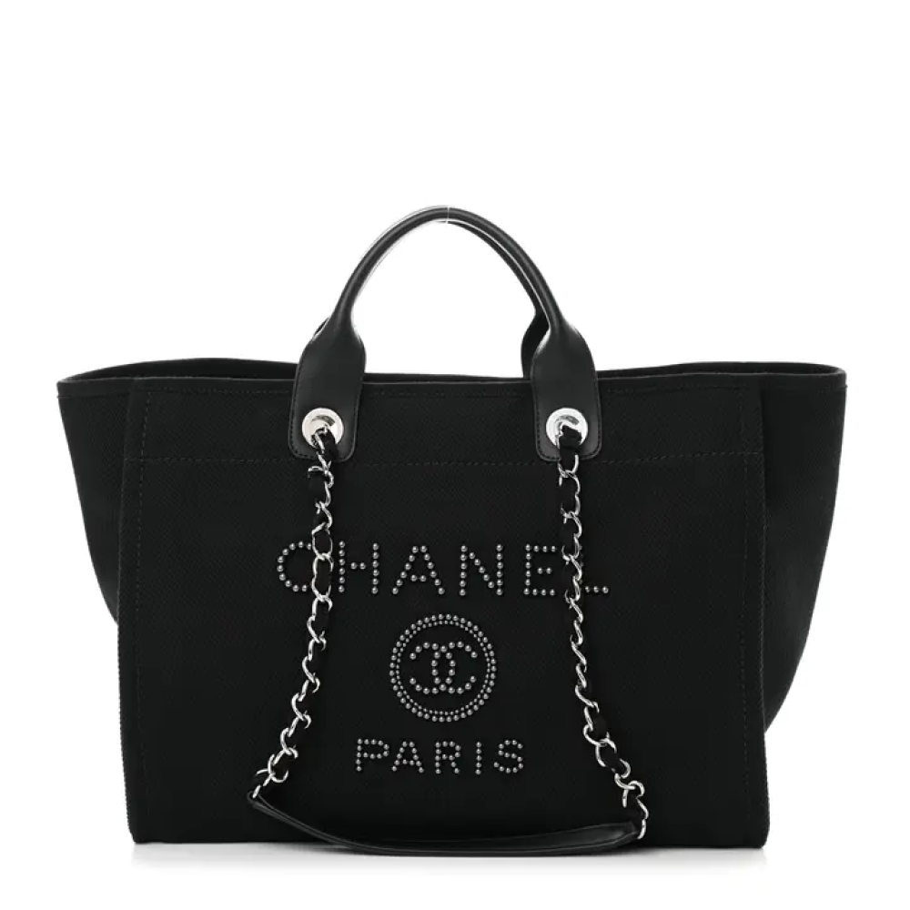 حقيبة شانيل متوسطة الحجم من قماش الكانفاس واللؤلؤ
