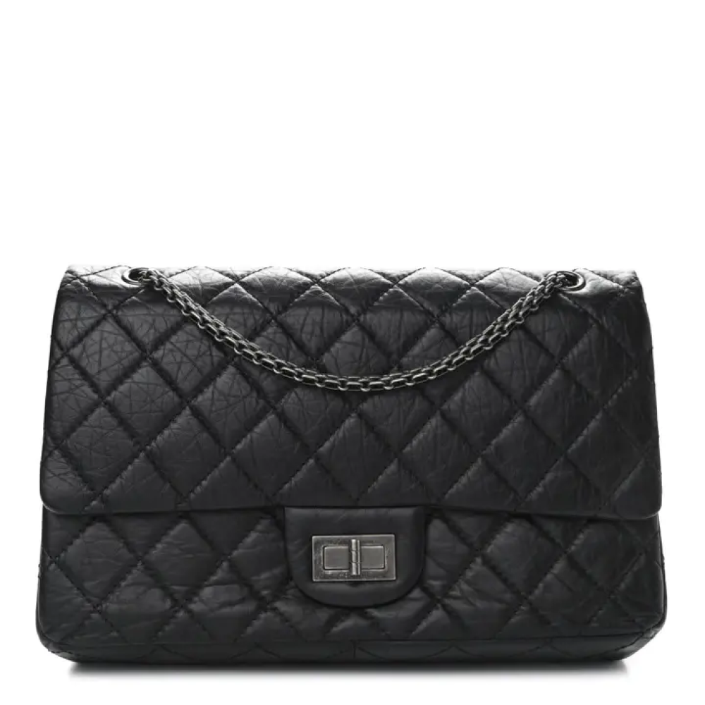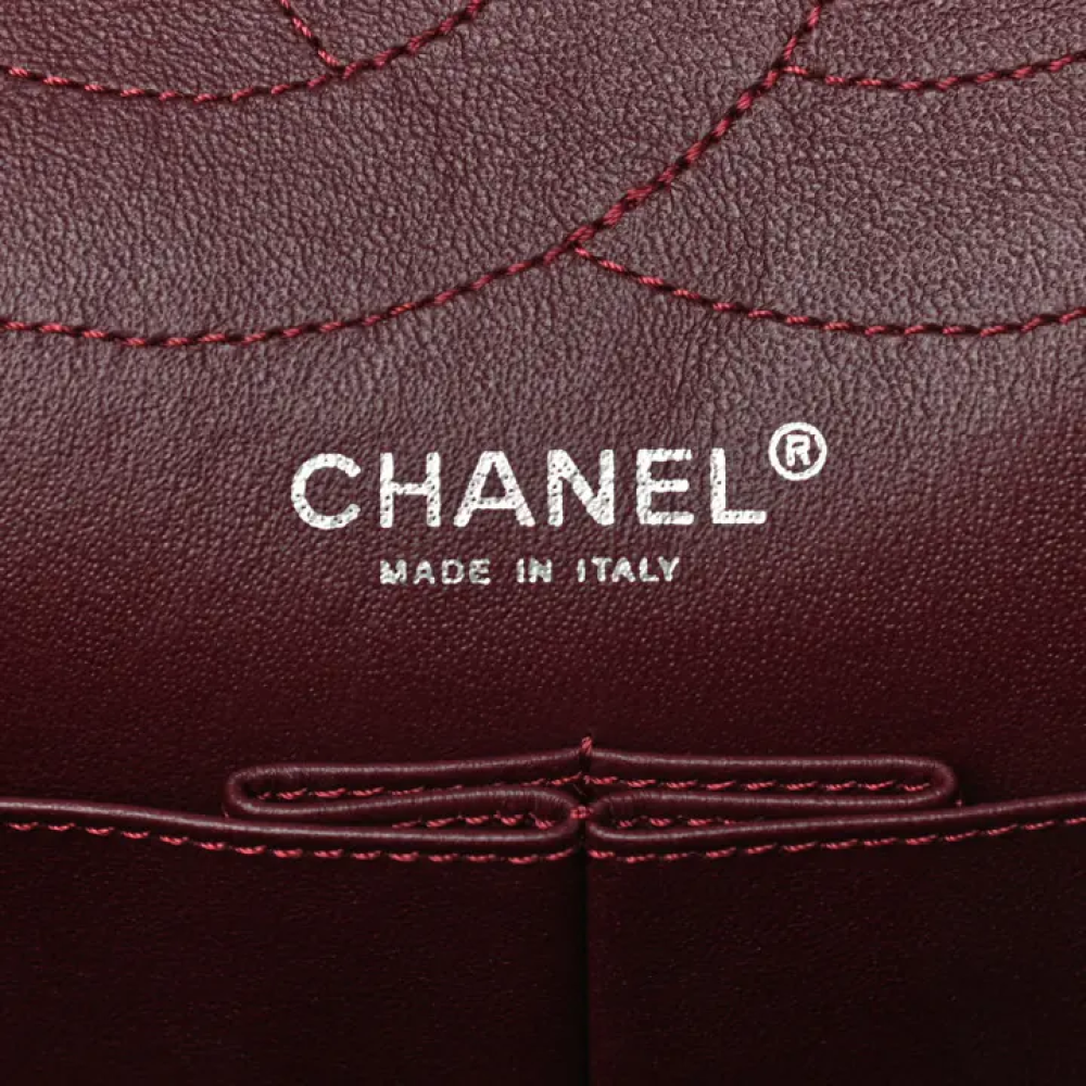 هذه حقيبة شانيل أصلية من جلد العجل الأسود المبطن بنمط ماسي عتيق، موديل 2.55 ريإيشو 226. تتميز هذه الحقيبة الأنيقة بتصميمها الرائع، حيث صُنعت من جلد العجل الأسود المبطن بنمط ماسي عتيق. تأتي الحقيبة مزودة بحزام كتف من سلسلة الروثينيوم، وقفل مادوموازيل مطابق على الغطاء. عند فتح الحقيبة، ستجد غطاءً داخليًا، وجيبًا أماميًا، وبطانة داخلية من الجلد العنابي مع جيوب داخلية.