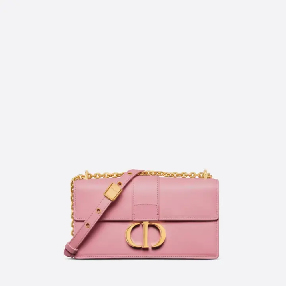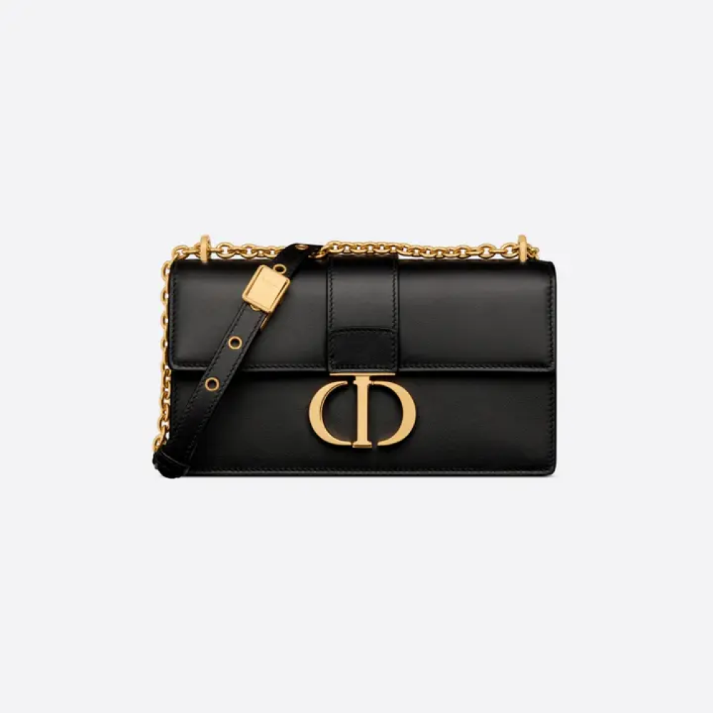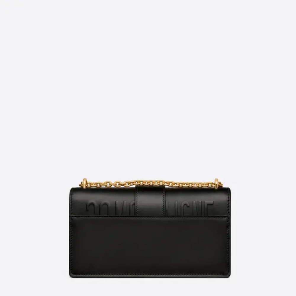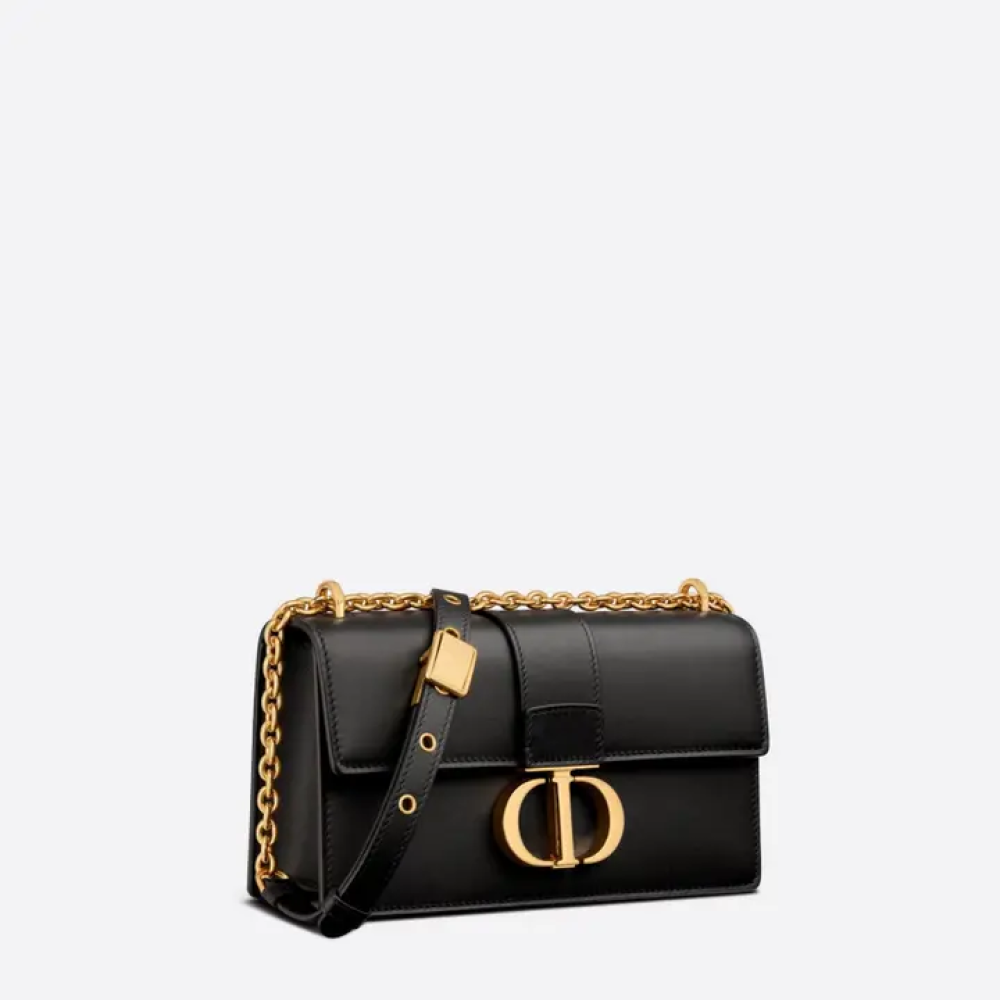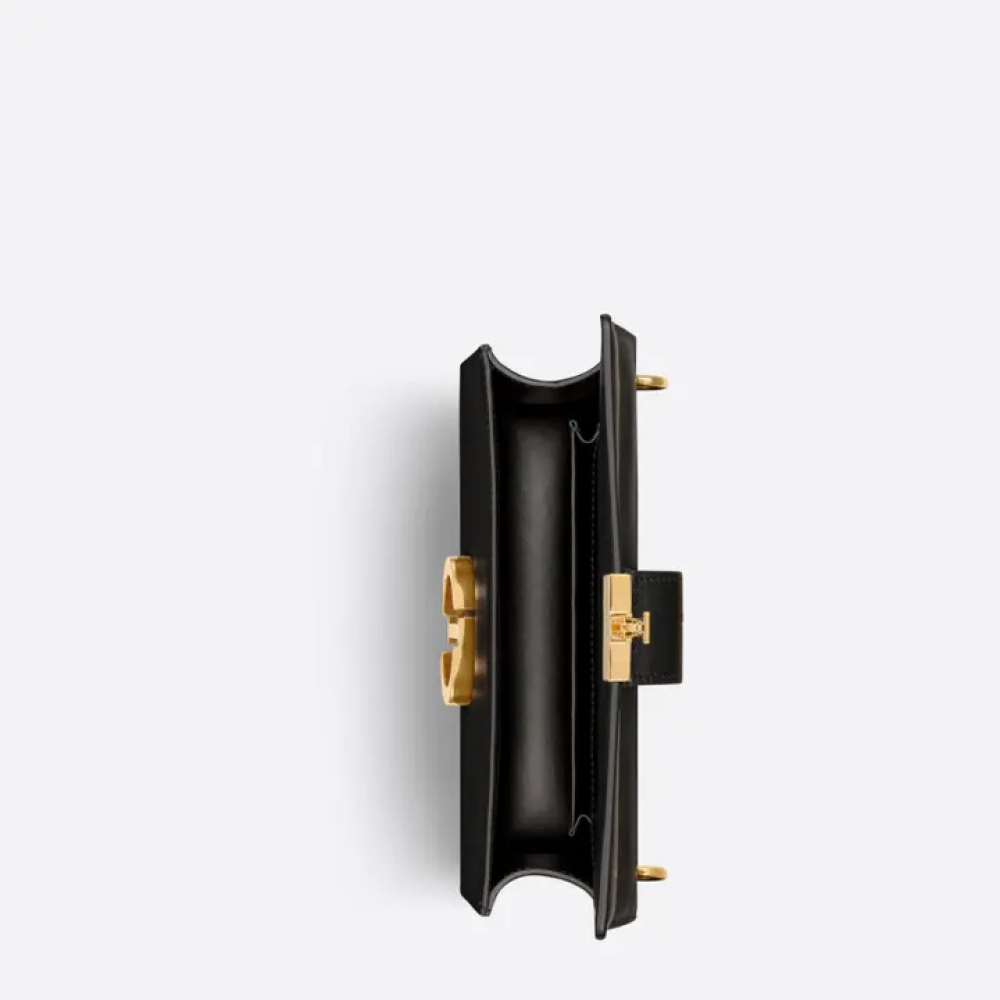 تتميز حقيبة 30 مونتين إيست-ويست تشين المصنوعة من جلد العجل الأسود بتصميم كلاسيكي أنيق يضفي لمسة مميزة على المجموعة. يحتوي غطاء الحقيبة على مشبك معدني بشعار CD مطلي بالذهب العتيق، مستوحى من قفل زجاجة عطر كريستيان ديور. وتُبرز تفاصيل