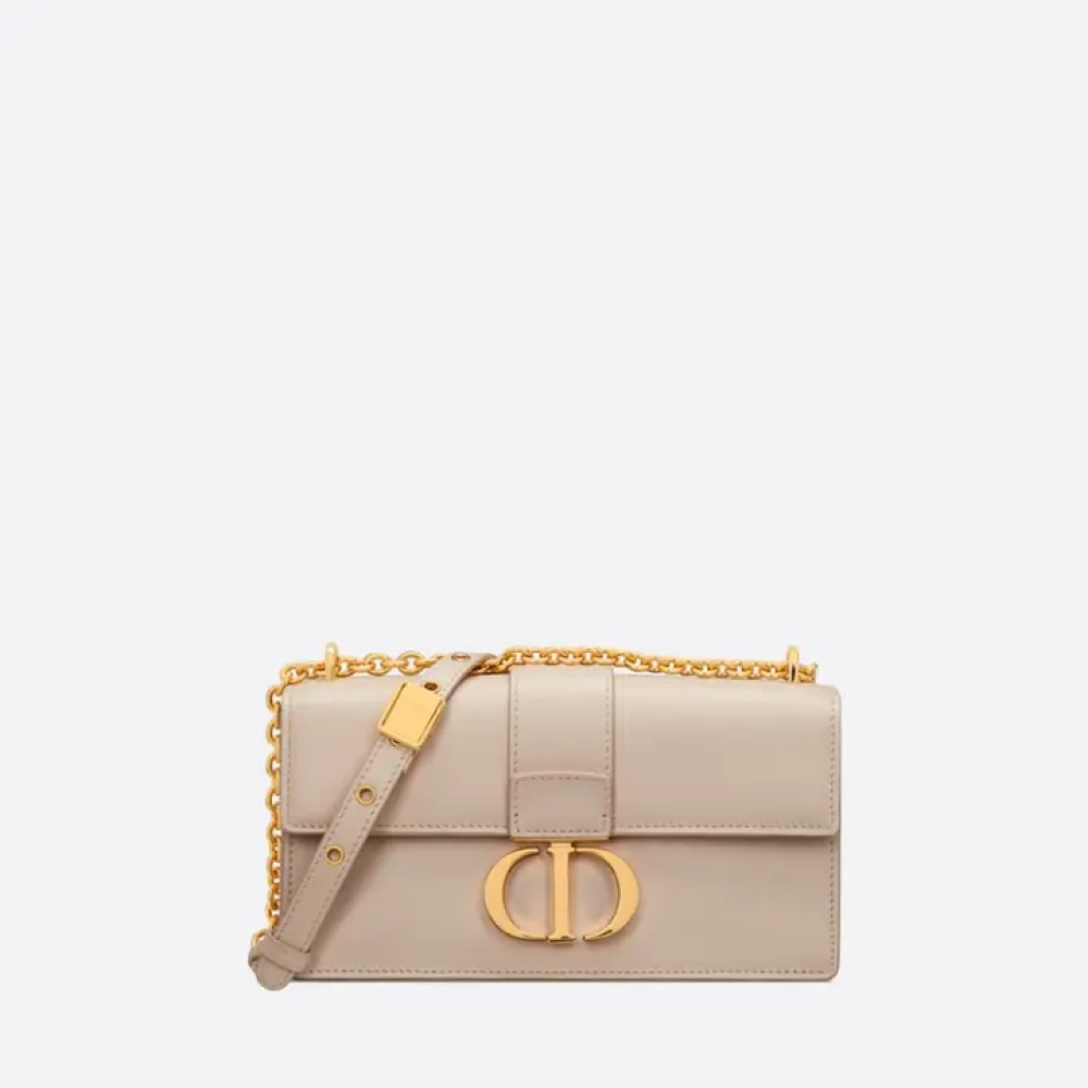 إضافية، مثل شعار 30 مونتين المنقوش على الجهة الخلفية، التصميم البسيط والراقي. تأتي الحقيبة مزودة بحزام كتف قابل للفصل مصنوع من سلسلة وحزام جلدي، مما يسمح بارتدائها باليد أو على الكتف أو عبر الجسم.