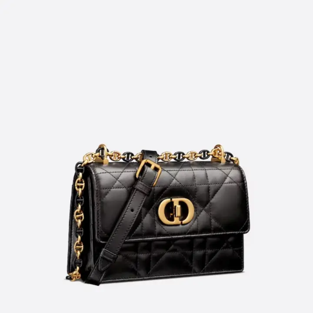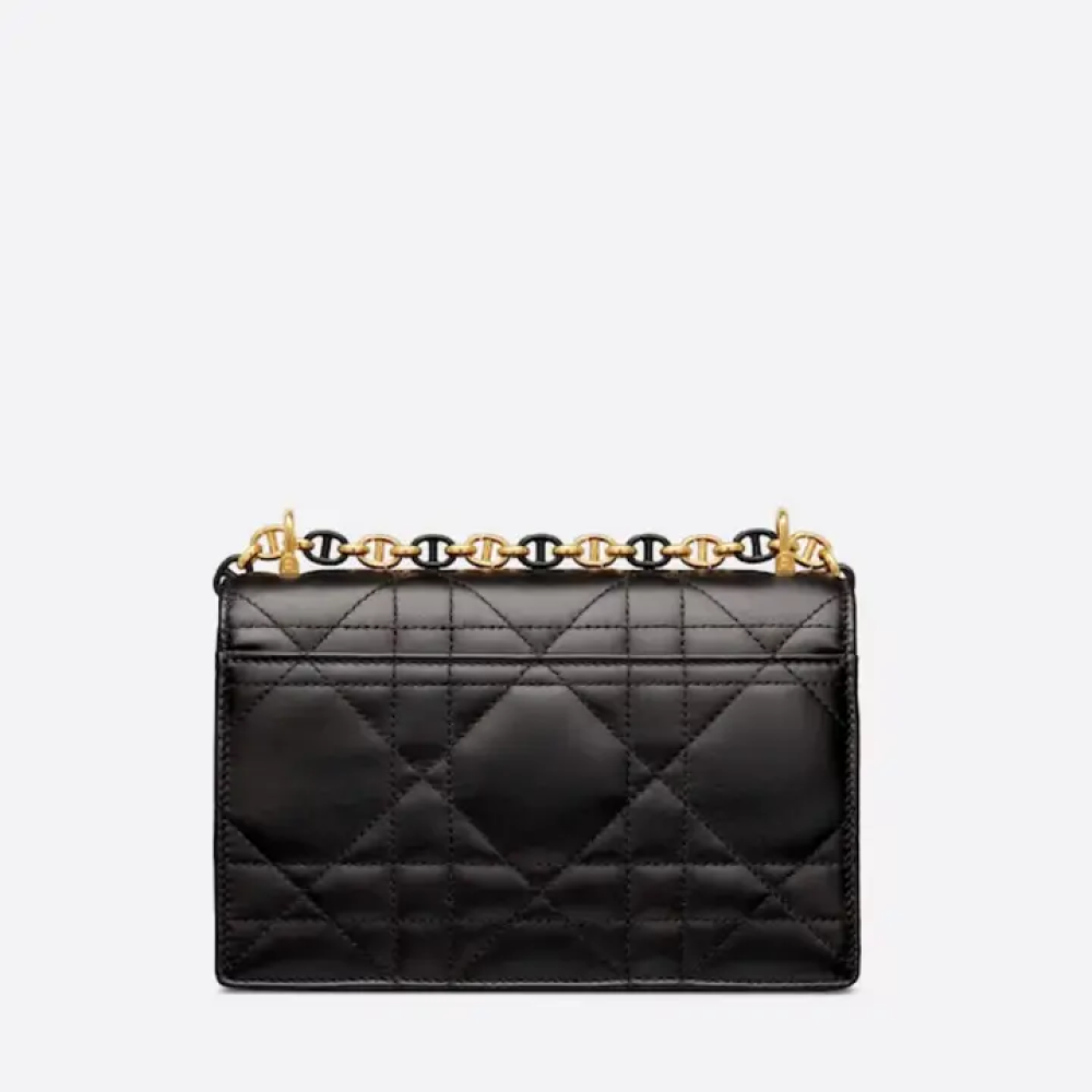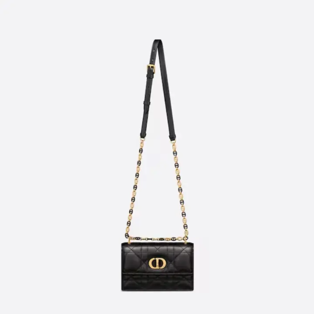 حقيبة اليد الصغيرة "ميس كارو" ذات السلسلة منتجًا جديدًا ضمن مجموعة خريف 2023 للأزياء الجاهزة، وهي إضافة مميزة لمجموعة "ديور كارو" وتُجسّد الأناقة العصرية. صُنعت الحقيبة من جلد الغنم الأسود، وتتميز بتطريز "كاناج" كبير الحجم لافت للنظر مع تأثير مُبطّن أنيق، بينما زُيّن غطاء الحقيبة بمشبك معدني ذهبي اللون على شكل زر، مستوحى من قفل زجاجة عطر "كريستيان ديور". تأتي الحقيبة مزودة بحزام كتف قابل للتعديل، مصنوع بالتناوب من حلقات معدنية ذهبية اللون وحلقات مطلية بالمينا بنفس لون الجلد. يمكن حملها باليد أو على الكتف باستخدام حزام جلدي لمزيد من الراحة.