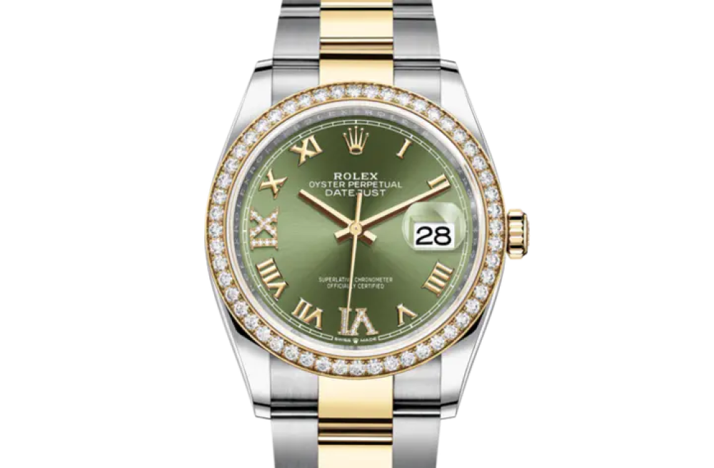 ساعة رولكس ديت جست 36 مم، مصنوعة من فولاذ أويستر، والذهب الأصفر، والماس