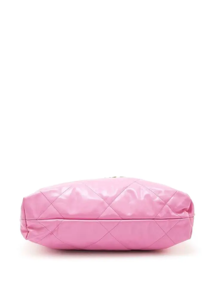 هذه حقيبة شانيل أصلية صغيرة الحجم، مصنوعة من جلد العجل اللامع المبطن، مقاس 22، باللون الأسود. تتميز هذه الحقيبة الأنيقة بتصميمها من جلد العجل الأسود المبطن بنمط ماسي. تأتي الحقيبة مزودة بحزام كتف من سلسلة فضية متشابكة مع الجلد، وشعار شانيل مطابق في الأمام. يُفتح الجزء العلوي بإغلاق مغناطيسي، ليكشف عن بطانة داخلية من القماش الأسود، تحتوي على جيب بسحاب وحقيبة صغيرة قابلة للإزالة.
