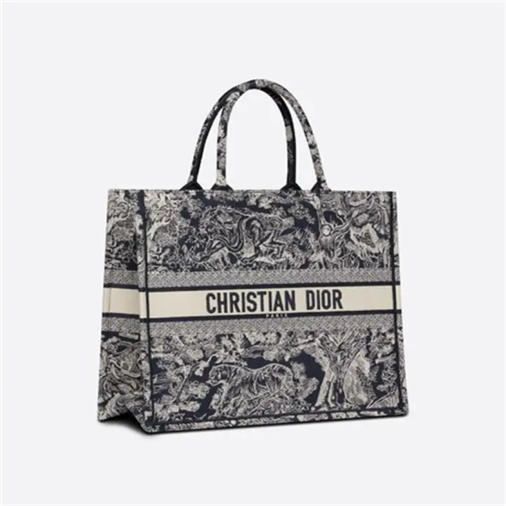 أصبحت حقيبة ديور بوك توت، التي قدمتها ماريا غراتسيا كيوري، المديرة الإبداعية لدار كريستيان ديور، قطعة أساسية في أناقة الدار. صُممت هذه الحقيبة لحمل جميع الأغراض اليومية الضرورية، وهي مطرزة بالكامل بنقشة توال دو جوي ريفيرس الزرقاء، وهي نسخة معدلة من نقشة الدار المميزة مع لمسة من الألوان المعكوسة. تحمل الحقيبة توقيع "كريستيان ديور" في الأمام، وتجسد براعة الدار المعهودة، ويمكن حملها باليد أو على الكتف.