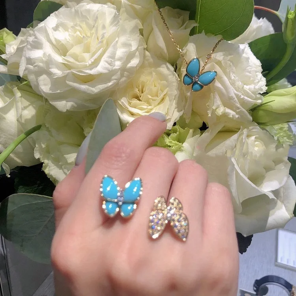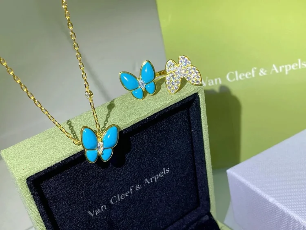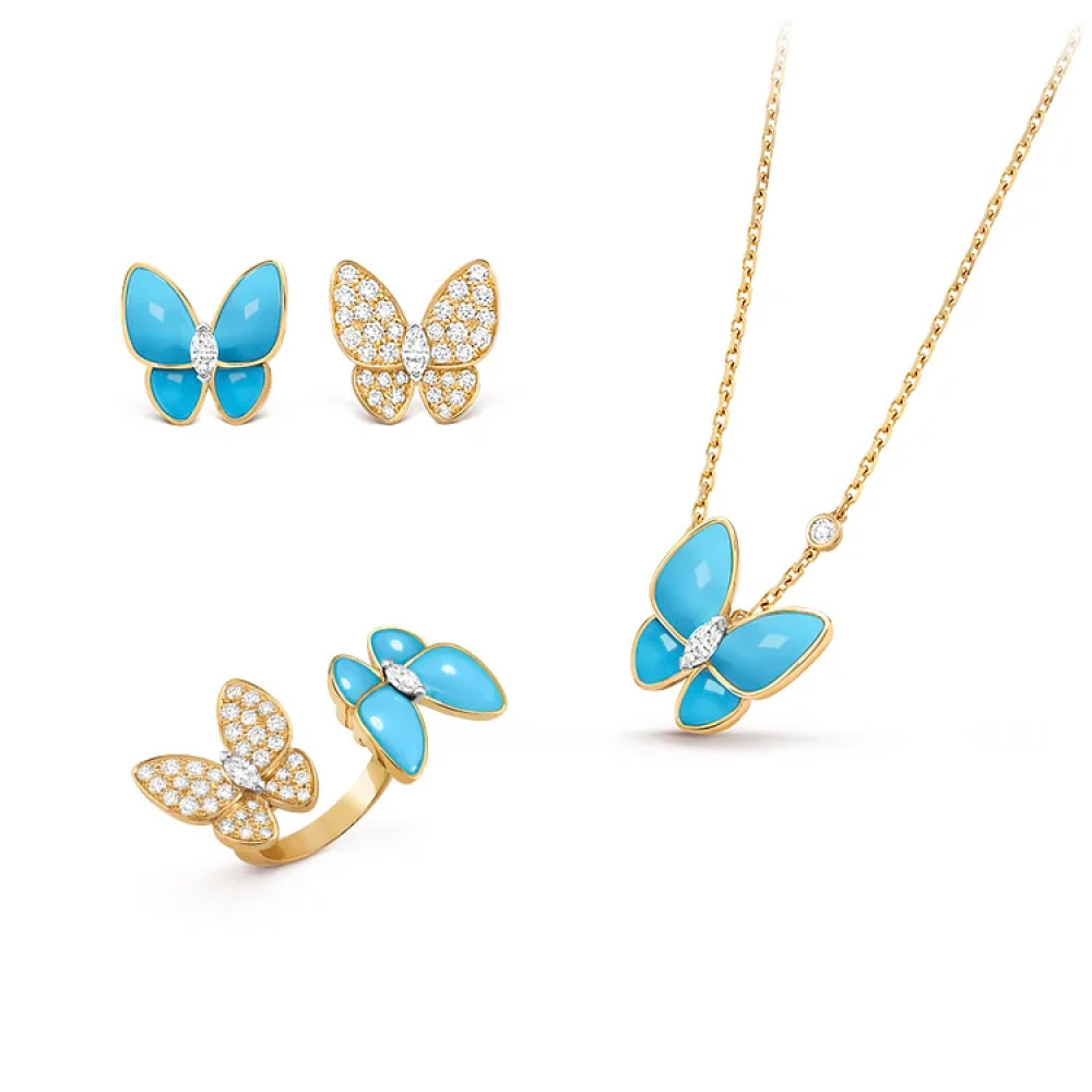 مجموعة [Two Butterfly]، مجموعة مكونة من 3 قطع [أقراط + خاتم + قلادة]