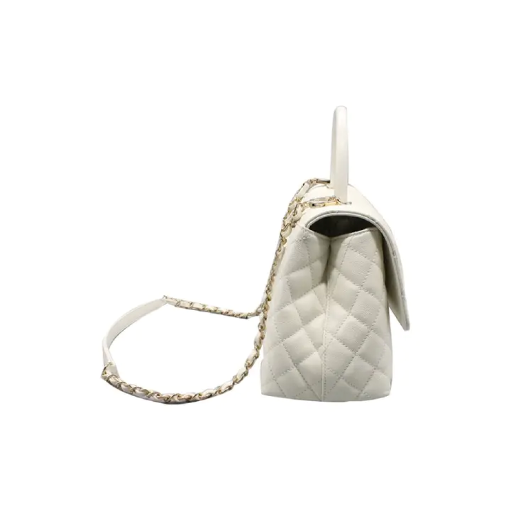 الحجم: 28 × 17 × 9 سم وصف هذه حقيبة شانيل أصلية من جلد الكافيار الأبيض المبطن والمُزين بتطريز ماسي، وهي حقيبة صغيرة أنيقة ذات غطاء قلاب. تتم...